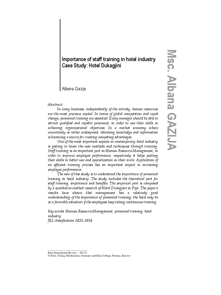 Importance of Staff Training in Hotel Industry Cas PDF PDF